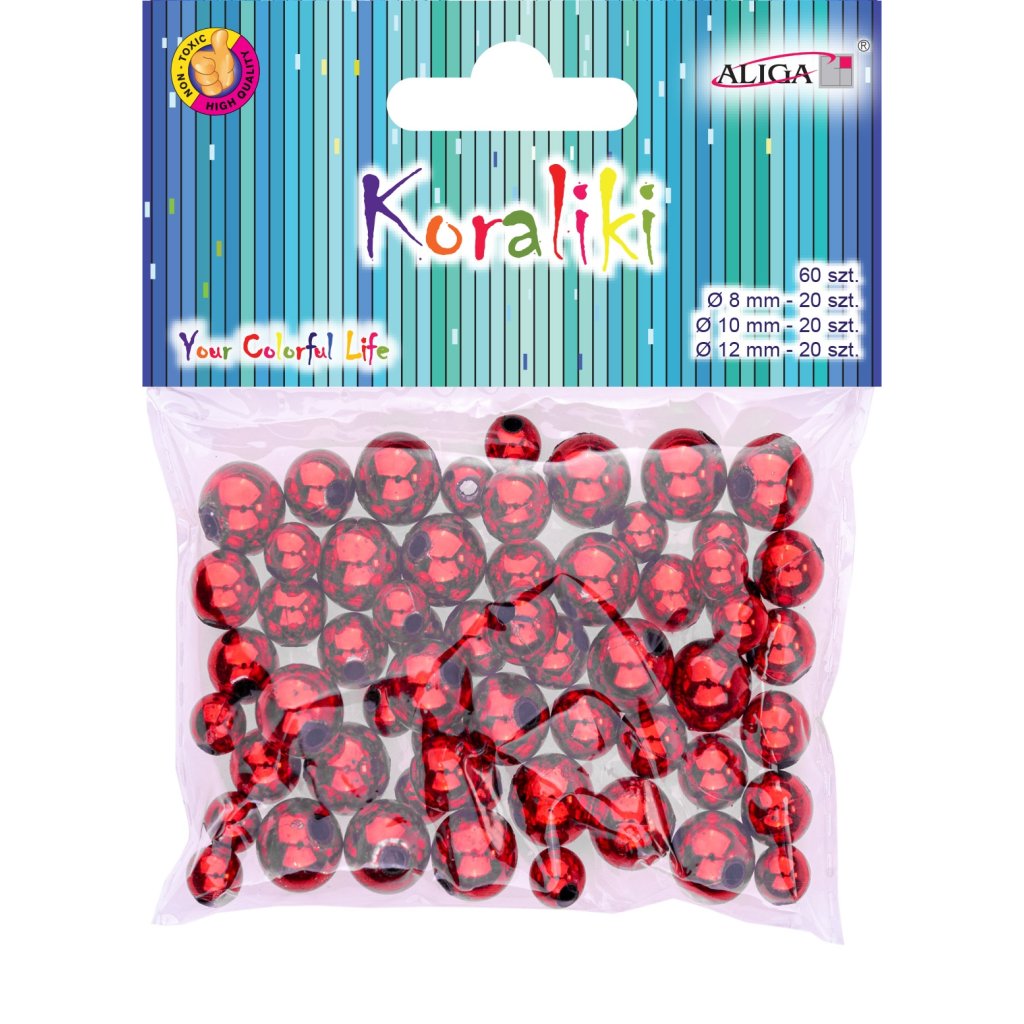 12/ plastové dekorační korálky, balení obsahuje 60 ks (pr. 8 mm, 10 mm a 12 mm po 20 ks), průvlek 2 mm