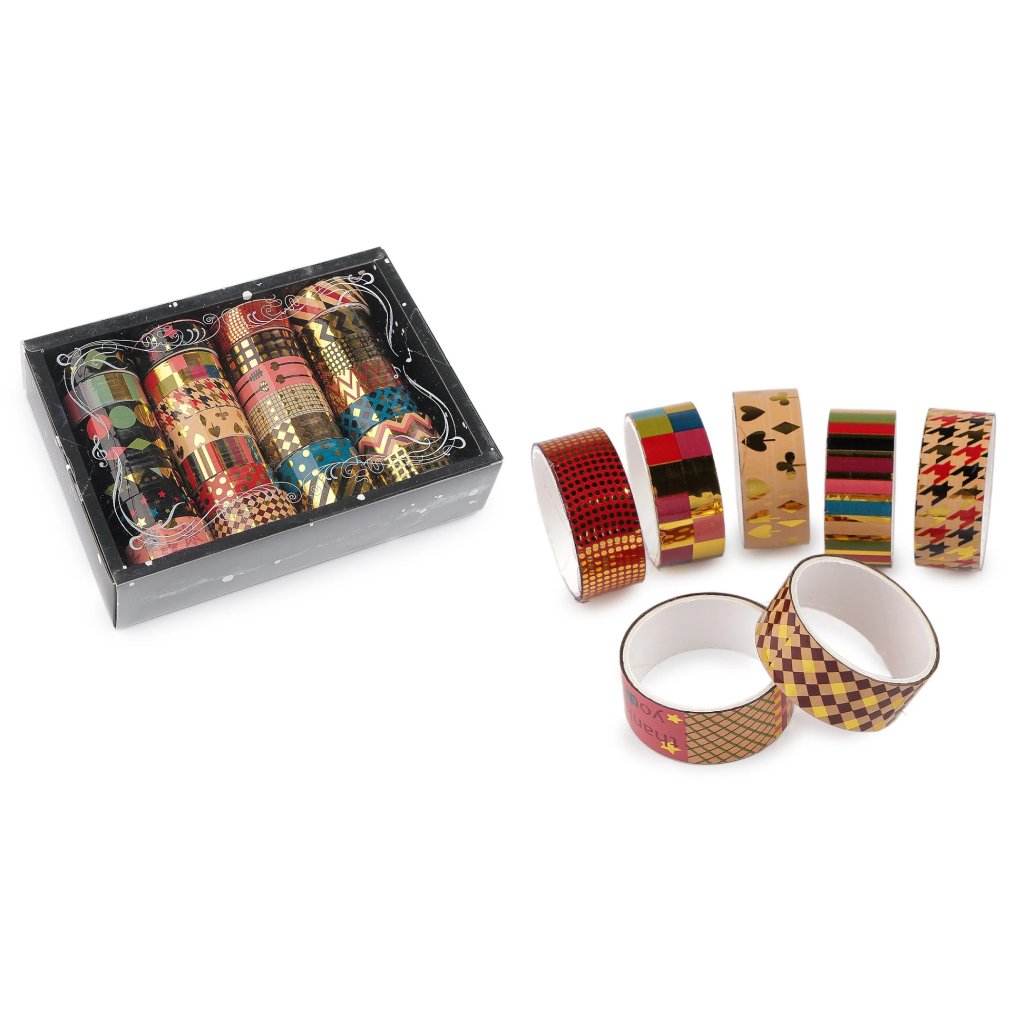 28/ dekorační lepicí páska, šířka 15 mm, délka cca 1,7 m, v balení 28 motivů v papírové krabičce s průhledným víkem, cena za kus