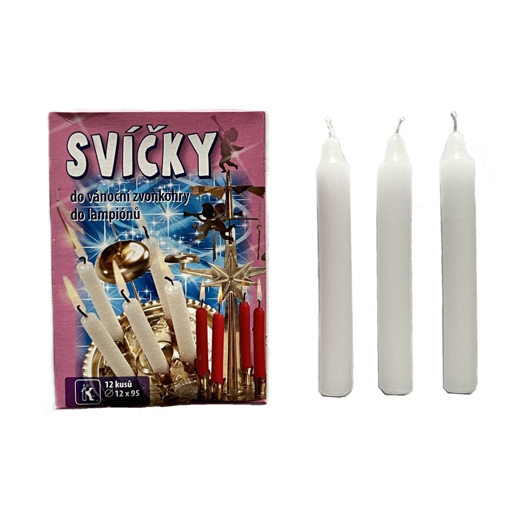 30/ vánoční i lampionová svíčka, 12 ks v krabičce, pr. 12 mm, délka 95 mm