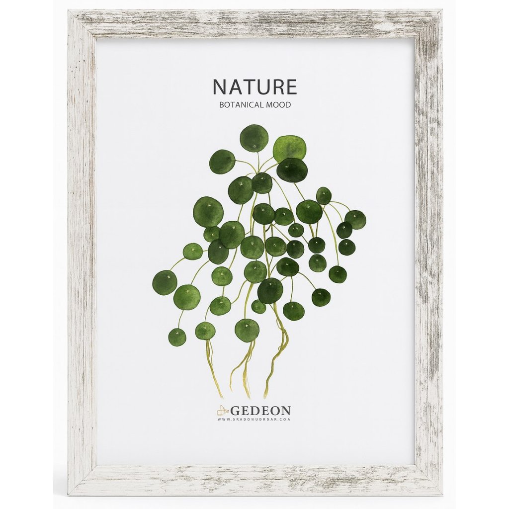 12/ skleněný v dřevěném rámečku, šířka rámečku 15 mm, tloušťka rámečku 9 mm, rámeček na postavení i pověšení