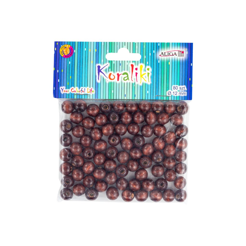 Korálky dřevěné pr. 12mm tmavě hnědé, 80ks