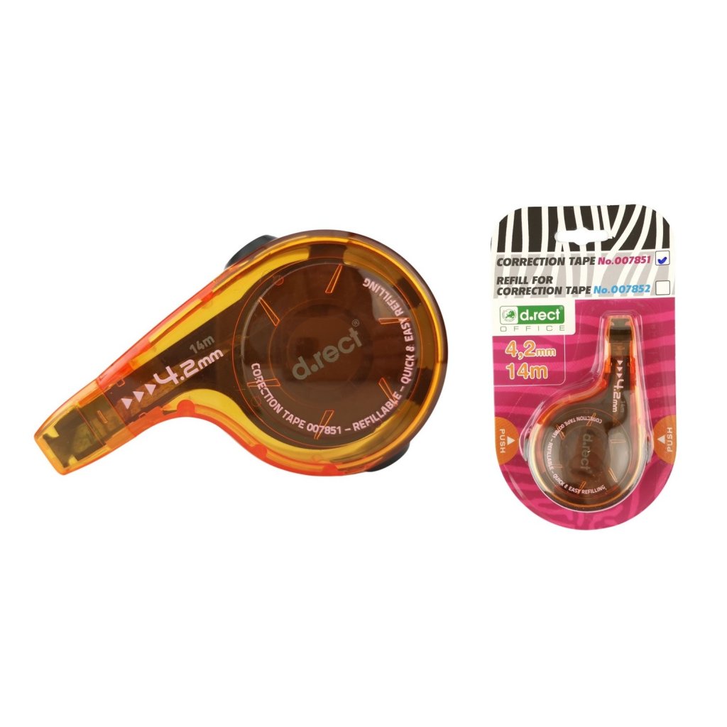 12/ šířka 4,2mm, délka 14m, boční korekce textu, konec je chráněn proti poškození pásky plastovou krytkou, průhledné pouzdro umožňuje kontrolu opotřebení pásky