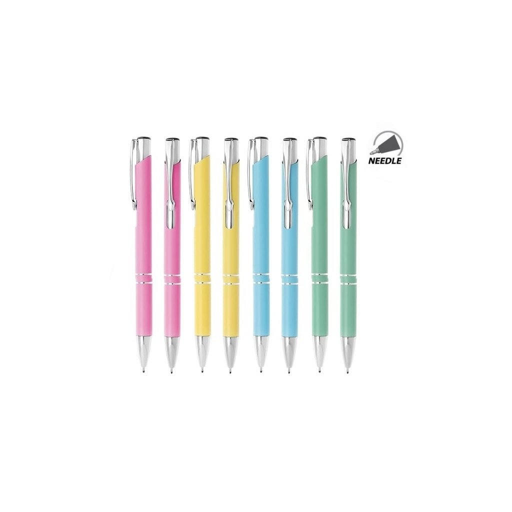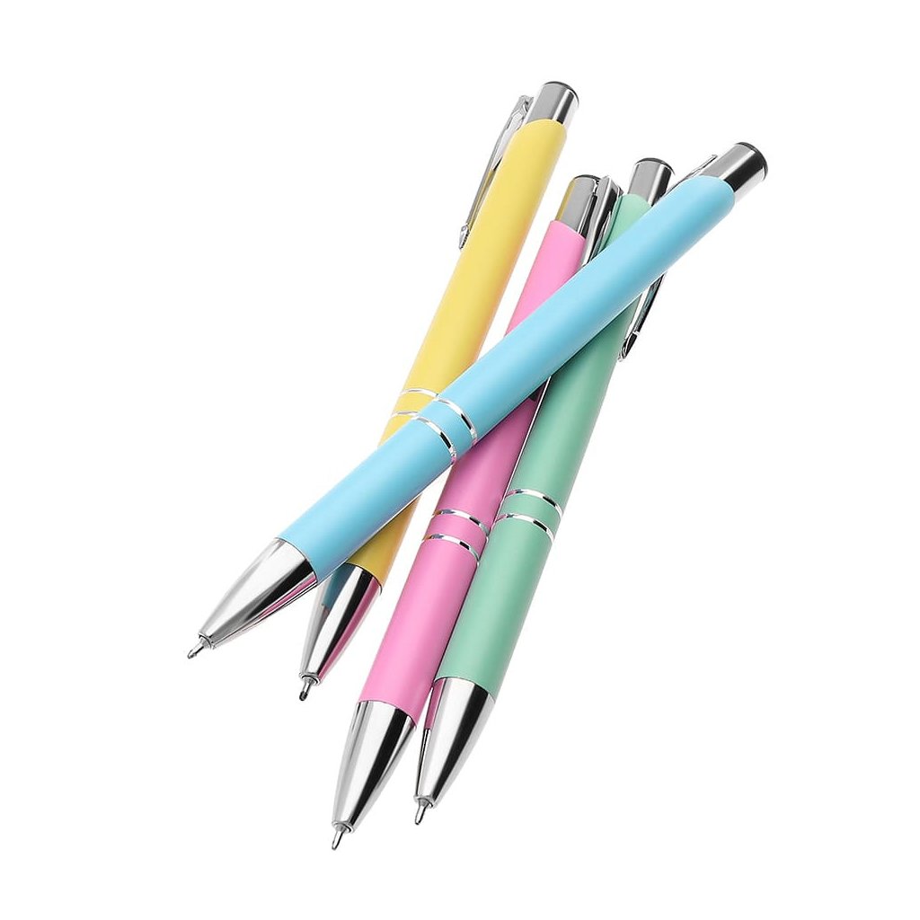 12/ soft povrch, hliníkové kuličkové pero, vyměnitelná náplň 10,7 cm, mix 4 pastelových barev