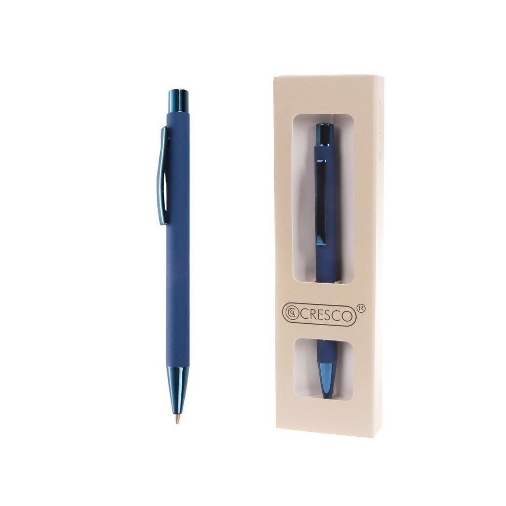 12/ kovová propiska, soft povrch v matné barvě a s lesklými chromovanými doplňky stejné barvy, v papírové krabičce, vyměnitelná velkoobsahová náplň