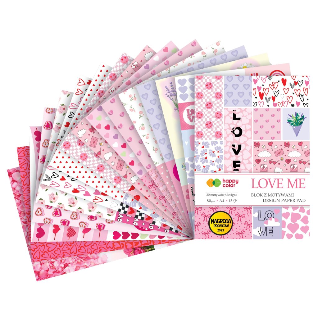 Papír dekorační A4 LOVE ME v bloku, 80g/m2