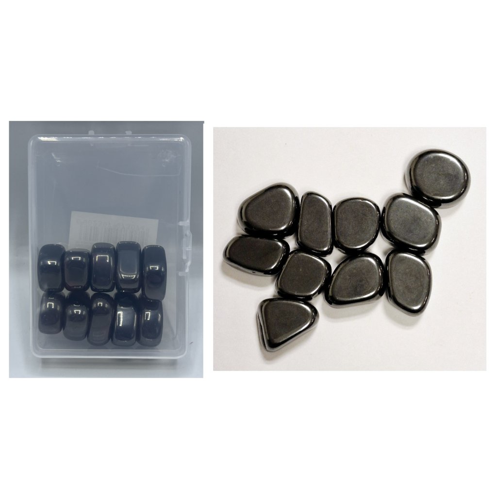 48/ lesklý magnet ve tvaru kamínku, vel. 2-4cm, 10ks v plastové krabičce