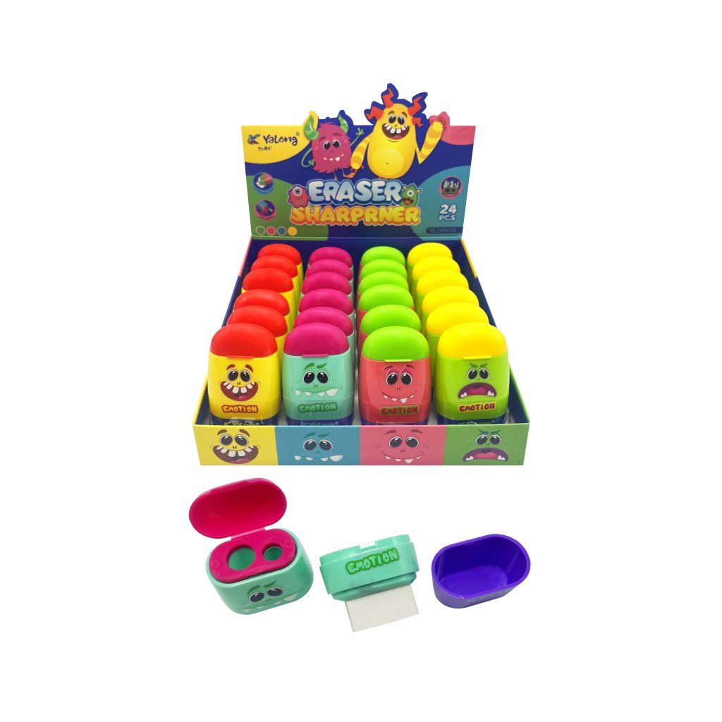 24/ plastové dvojité ořezávátko + guma, rozměr 7,5 x 4,3 x 2,7 cm, mix barev
