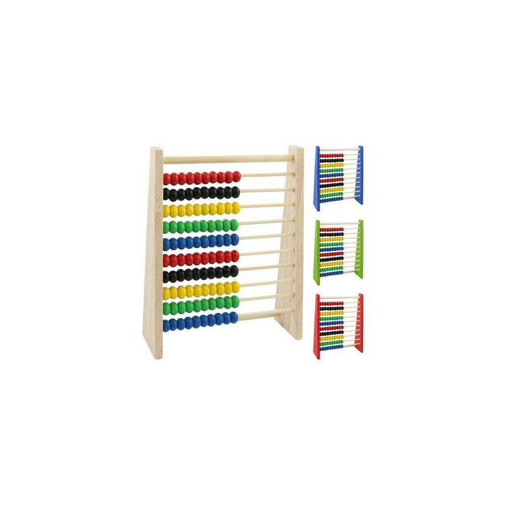 dřevěné počítadlo, 10 řad po 10 barevných kuličkách, rozměr 16 x 20 x 5 cm, mix 4 barev