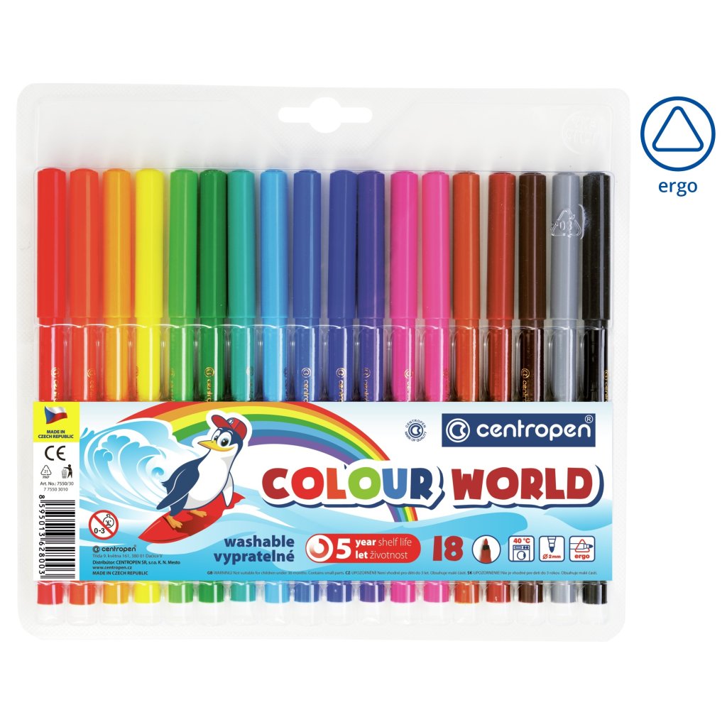 24/ barevné popisovače, ERGO držení, zdravotně nezávadný inkoust odolávají vyschnutí až 5 let, vypratelné, ventilační chránítko, válcový hrot odolný proti zatlačení, šířka stopy 1 mm