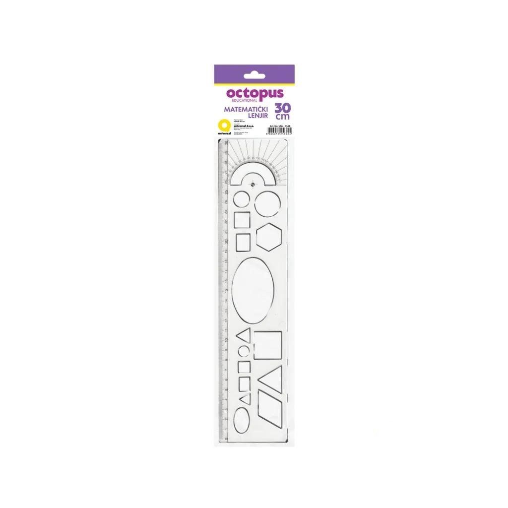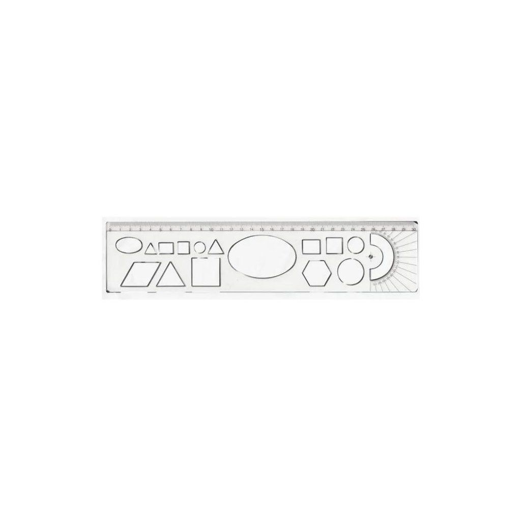 pravítko s geometrickými tvary, transparentní, délka 30 cm, šířka 7 cm