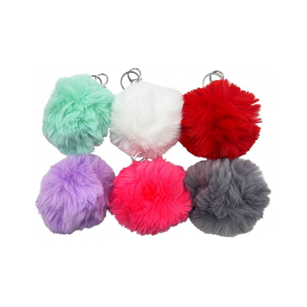 12/ pr. 10 cm, chlupatá koule s karabinkou a kroužkem na klíče, mix barev, v balení 12 ks, cena za kus