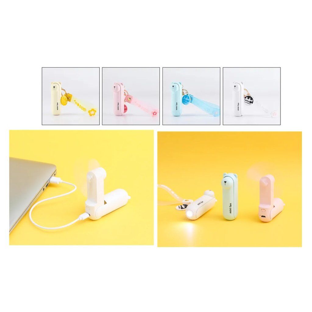 klíčenka s mini ventilátorem a se svítilnou ve tvaru medvídka, vel. 8,5 cm, karabinka a kroužek na řetízku ve zlaté barvě, ventilátor má tři režimy rychlosti větru, nabíjení USB kabelem, mix 4 barev