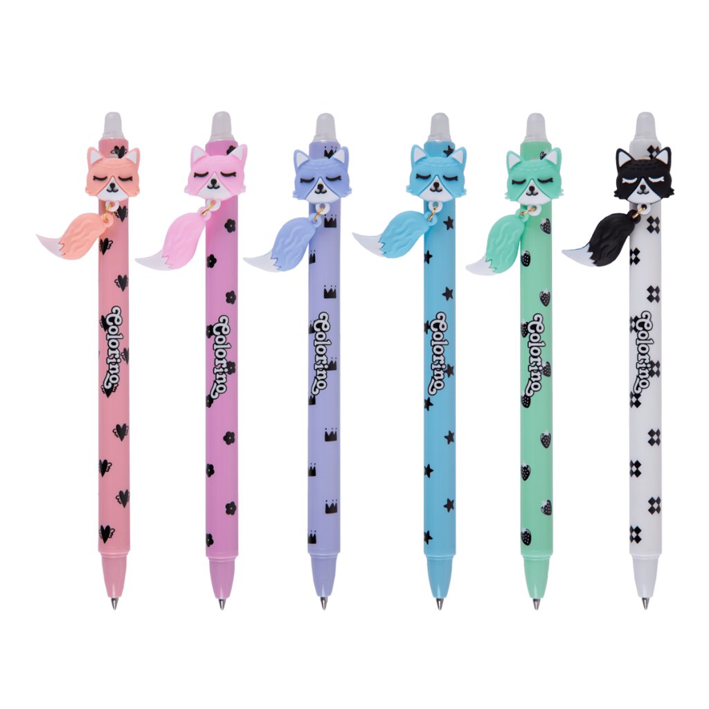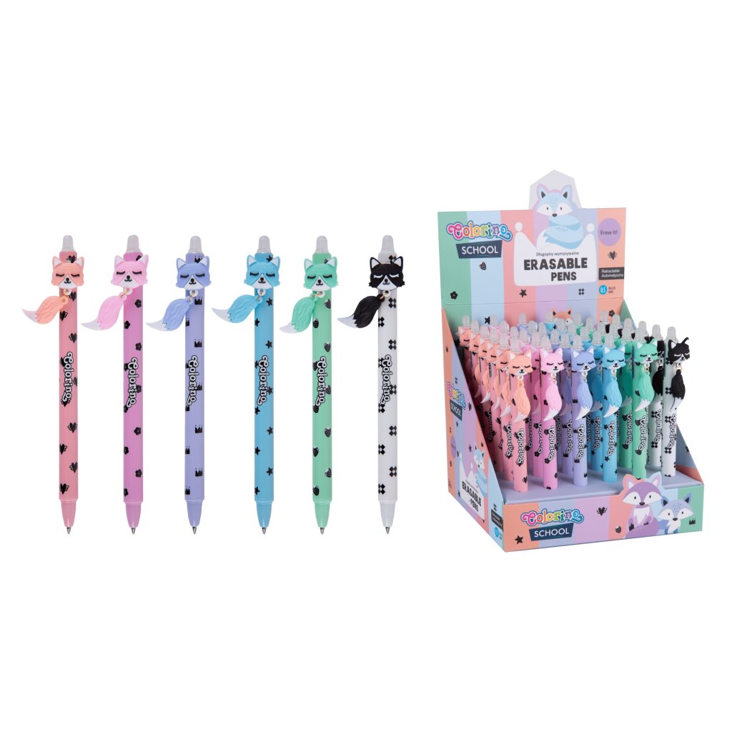 36/ hrot 0,5mm, stiskací mechanika, s motivem lišky s ocáskem, který se zlehka pohupuje, vyměnitelná gumovací náplň Colorino, mix 6 barev