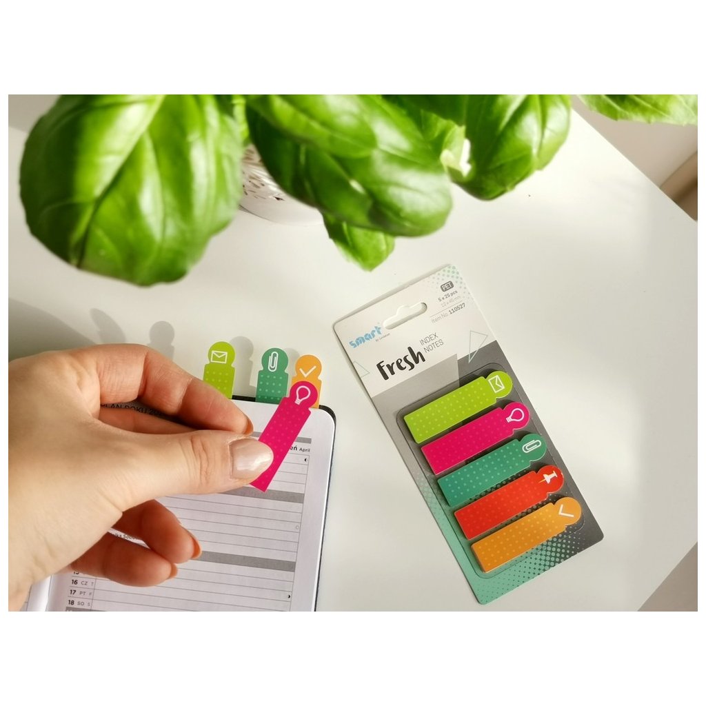 30/ fóliová, 125 listů (5 barev s motivem po 25 ks), velikost jedné záložky je 45 x 12 mm