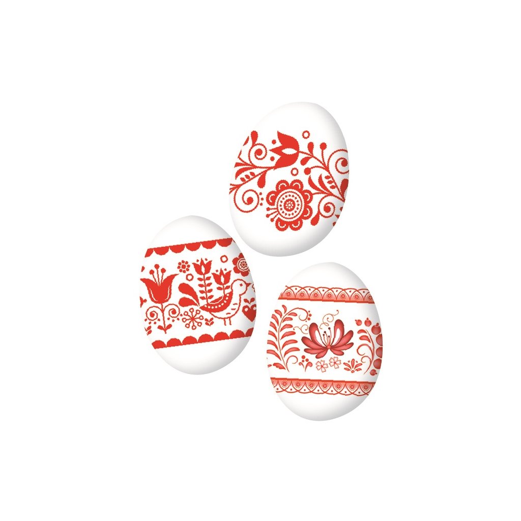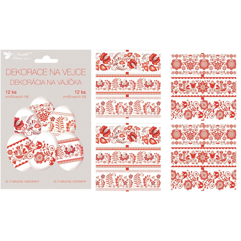 smršťovací fólie na vajíčka s červenými ornamenty, balení vystačí na 12 kusů vajíček