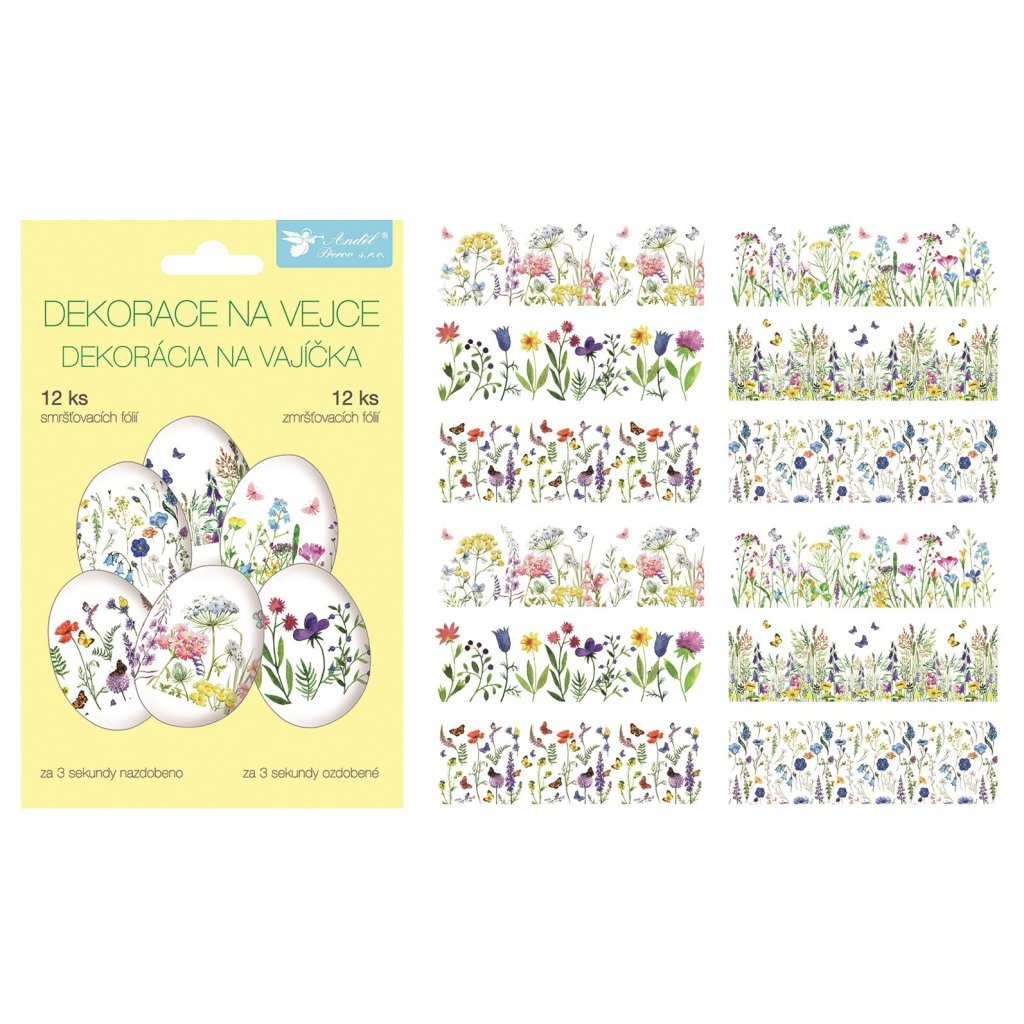 smršťovací fólie na vajíčka s motivy lučních květin, balení vystačí na 12 kusů vajíček