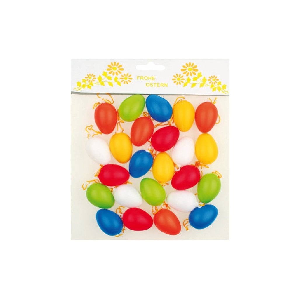 Vajíčka barevná plastová na zavěšení 4cm, 24ks