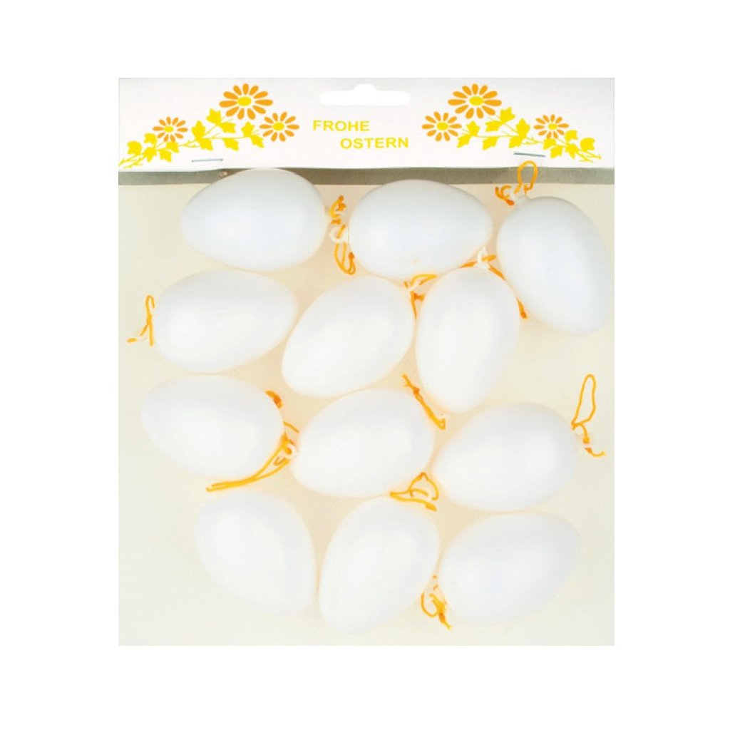 Vajíčka bílá plastová na zavěšení 6cm, 12ks